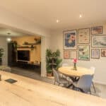 Binnen trokken we de hoogwaardige afwerking door: nieuwe bezetting, gyprocwerken waar nodig, strakke binnendeuren en plinten, en een zorgvuldige plaatsing van tegels en vinylvloeren. Ons team zorgde tenslotte ook voor een grondige badkamer renovatie.